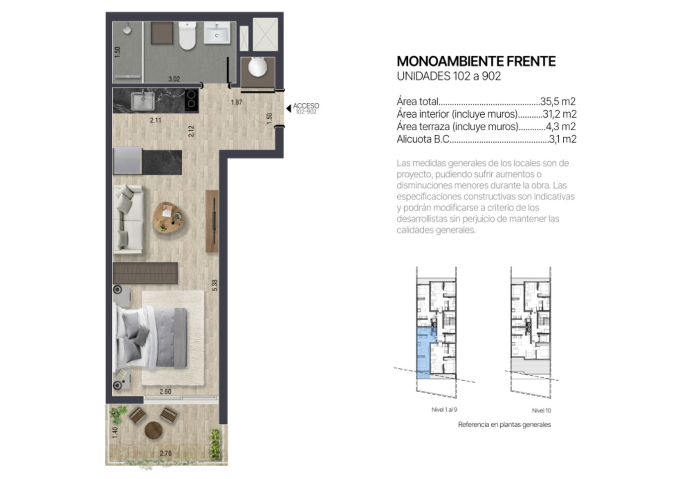 Tipologías: Lofts y 1 dormitorio